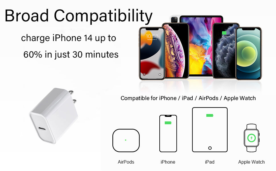 - This USB-C charger block is compatible with iPhone & iPad device.