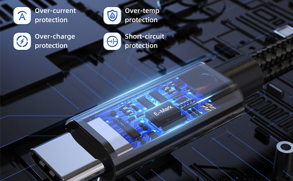 - Build-in E-Marker Chip, Fully compatible with PD 3.1/3.0, QC3.0/2.0 Fast Charging Protocol.